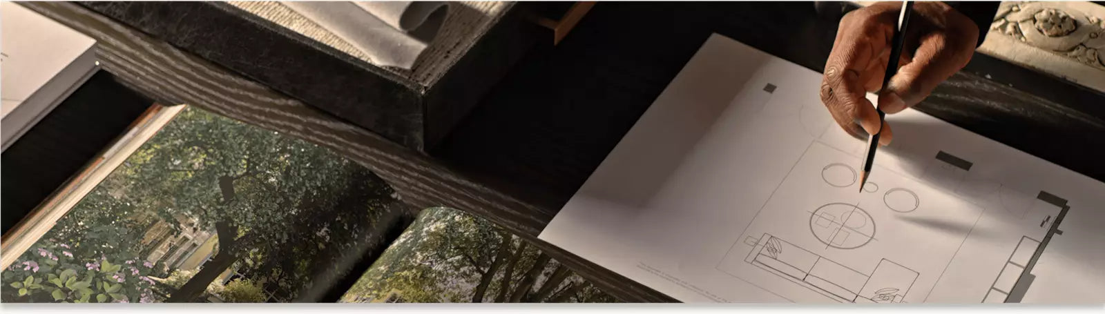 An interactive atelier highlights our vast assortment of textiles, furniture and lighting finishes. Here, beneath a custom chandelier by Joseph Jeup, clients can collaborate with an accomplished team of in-house designers on projects big or small.