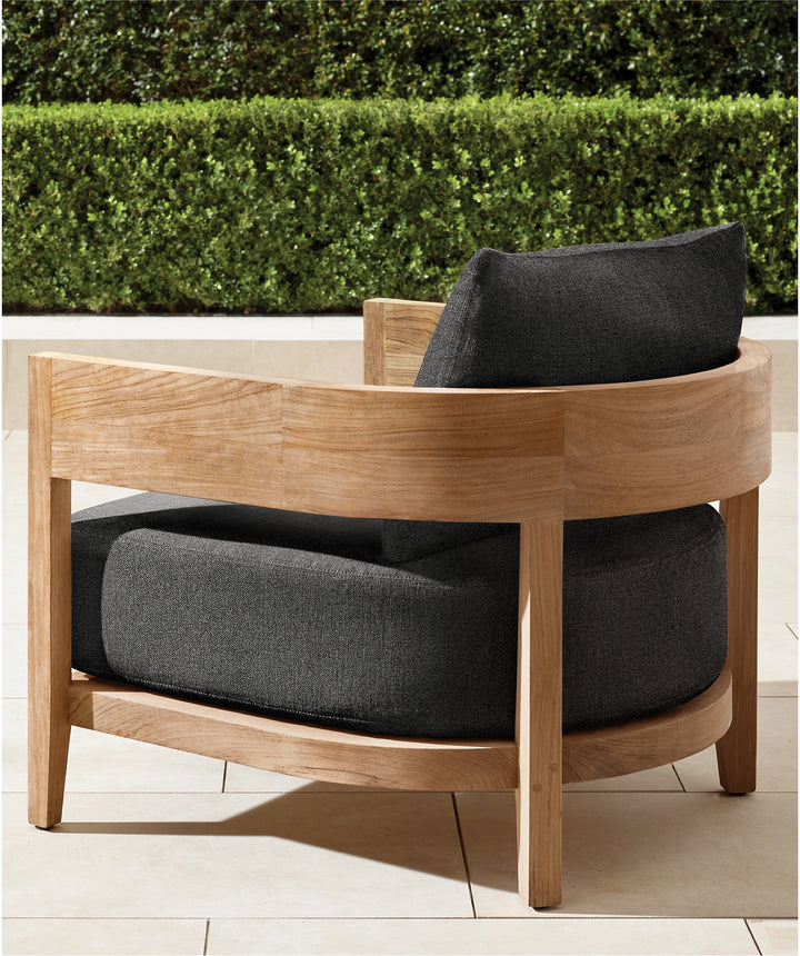• Handcrafted by Indonesian artisans from sustainably harvested premium solid teak, the Balmain collection features curved backs, tapered legs and mortise-and-tenon joinery