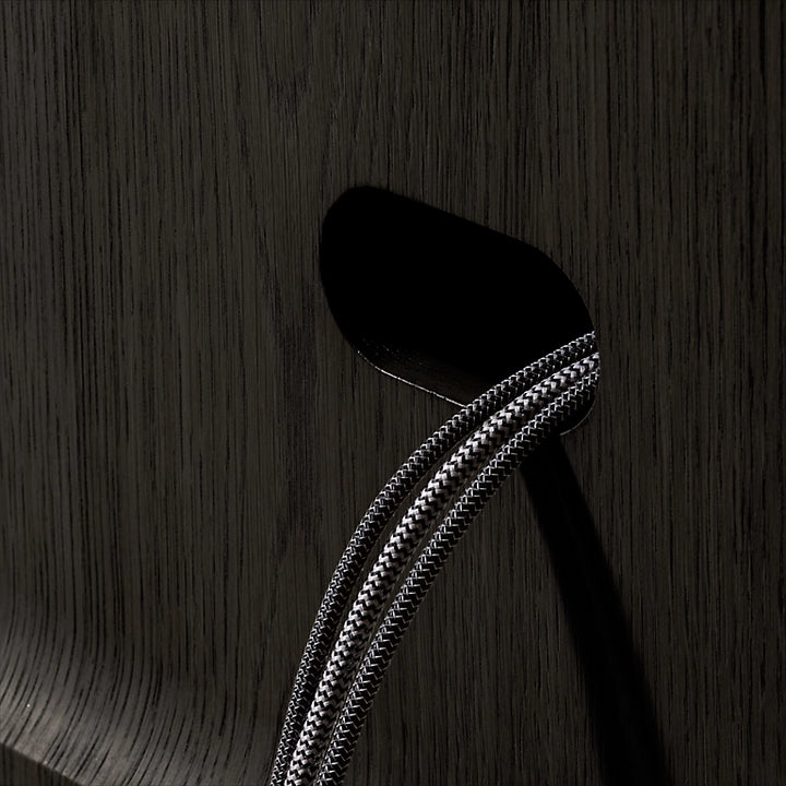 • 2 cord cutouts in back panel for wire management (1 per side); cord cutouts have wood grommets in a complementary finish