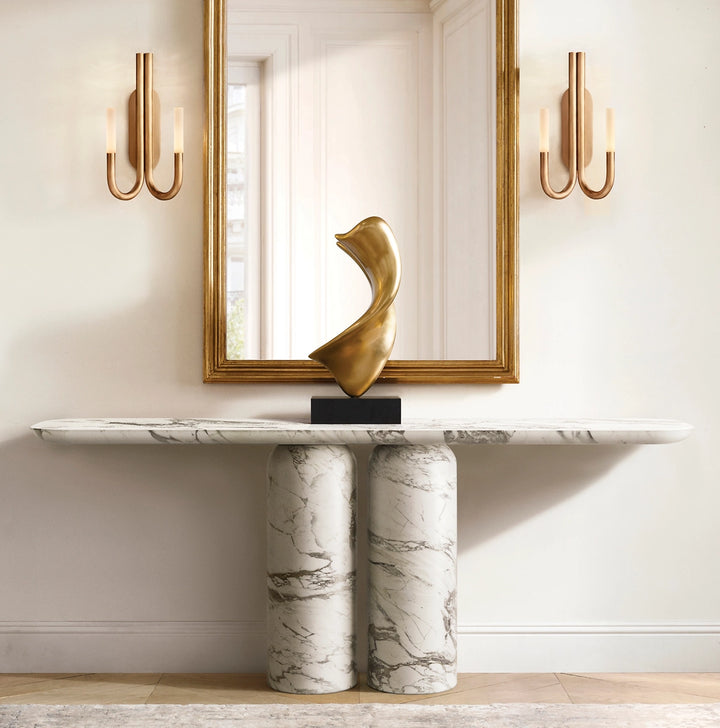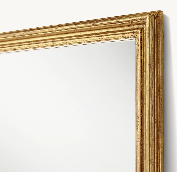• Antiqued gold-leaf finish is hand-applied and distressed for an aged patina