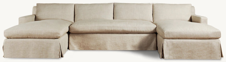 Belgian Slipcovered Track Arm Customizable Bench-Seat Sectional