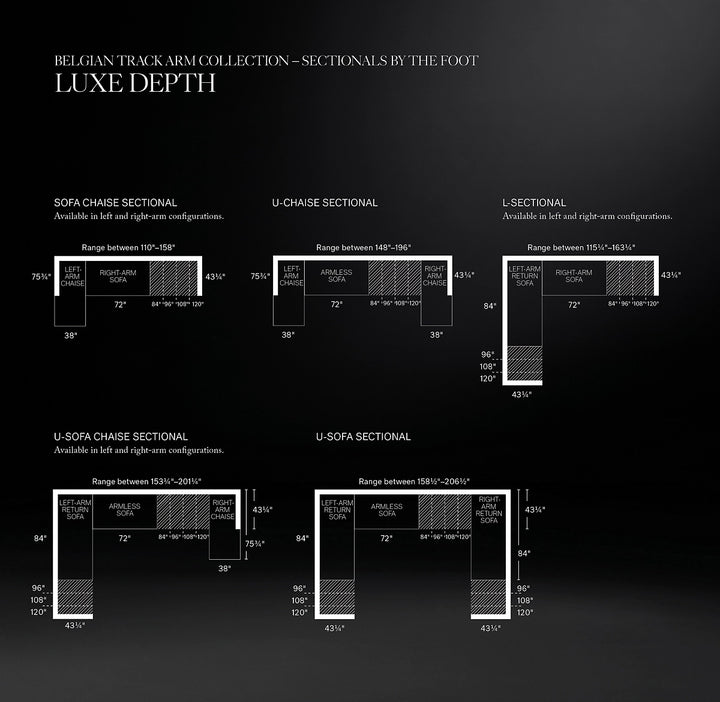 • Luxe Left-Arm L-Sectional Overall: 115¼"-163¼"W x 84"-120"D x 34"H