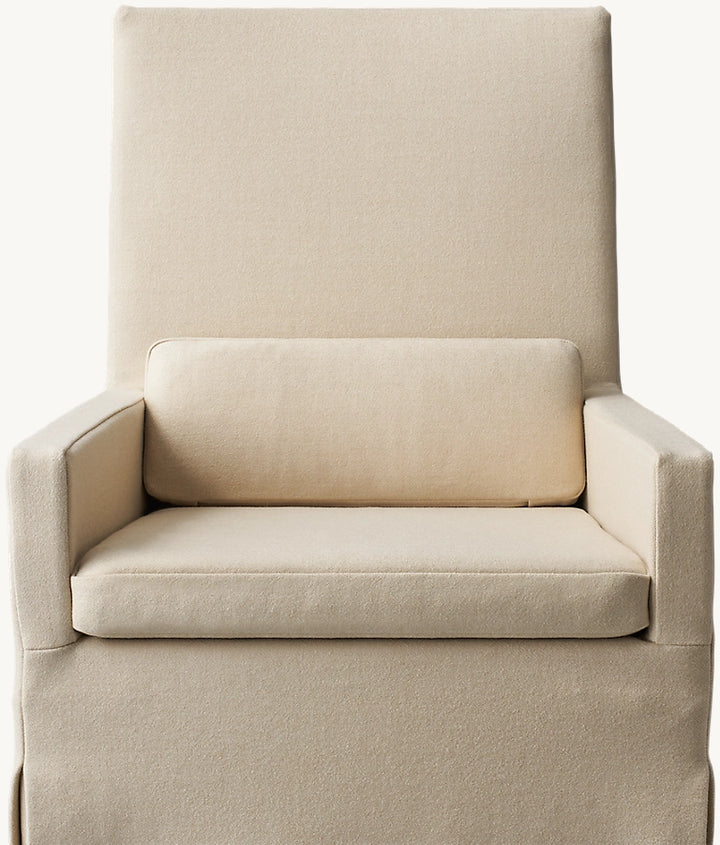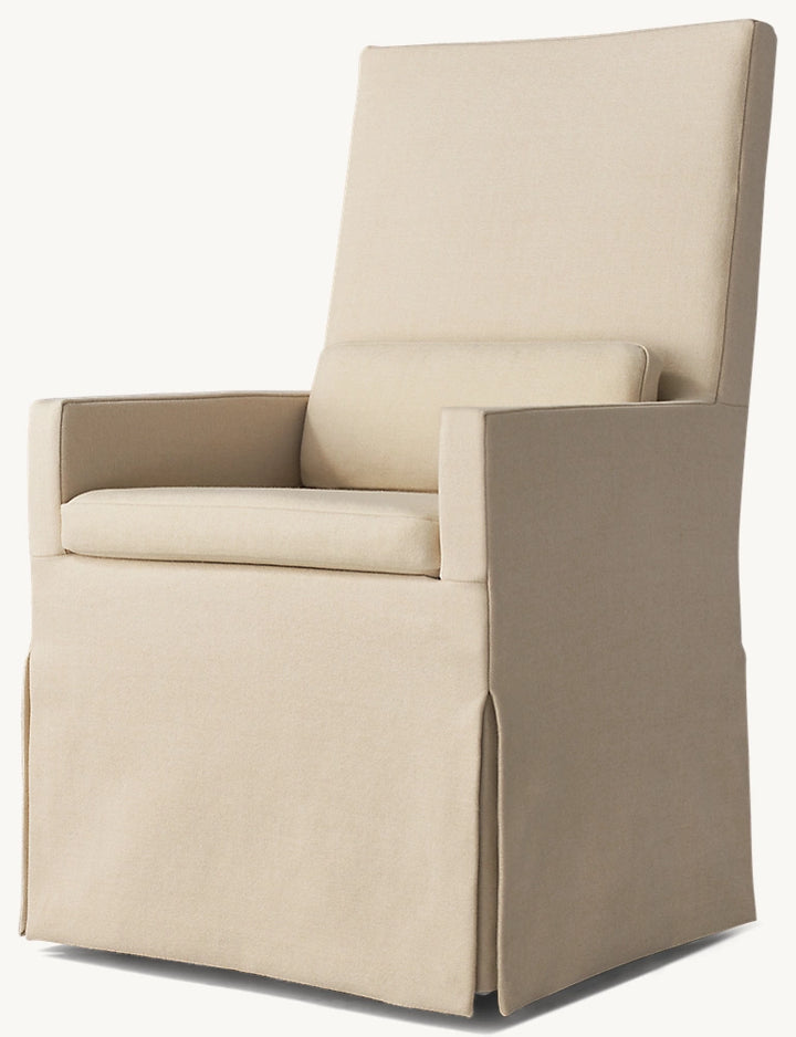 Belgian Track Arm Slipcovered Dining Armchair