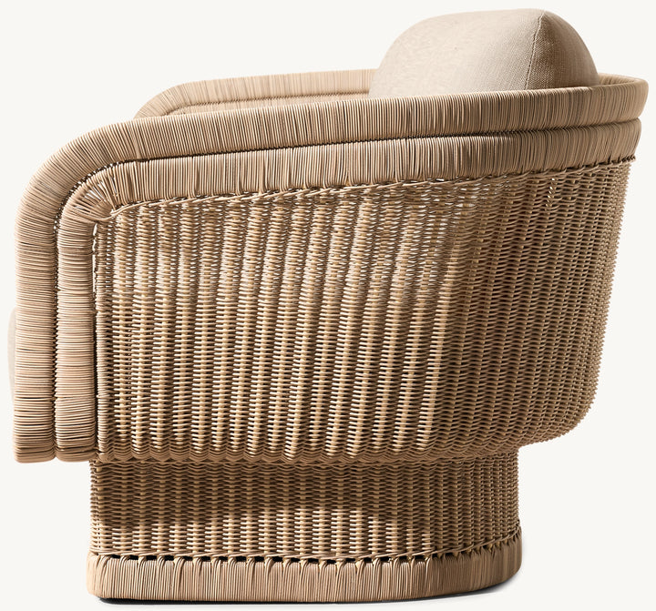 • Crafted by skilled artisans, the Bloom collection features a handwoven lattice of all-weather resin wicker wrapped around a powdercoated aluminum frame