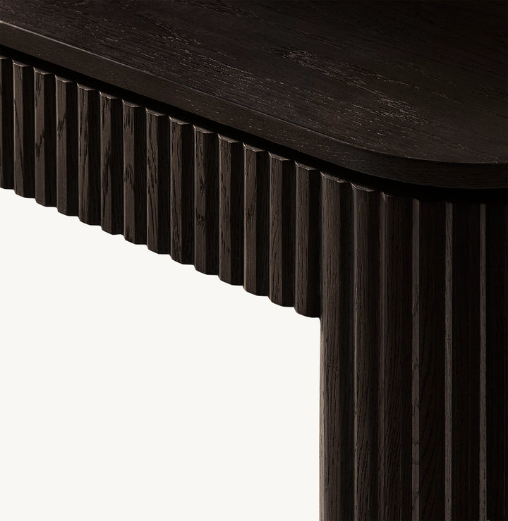 • Finish is achieved through an intensive, multistep process in which oak is wire brushed by hand to highlight its rich grain
