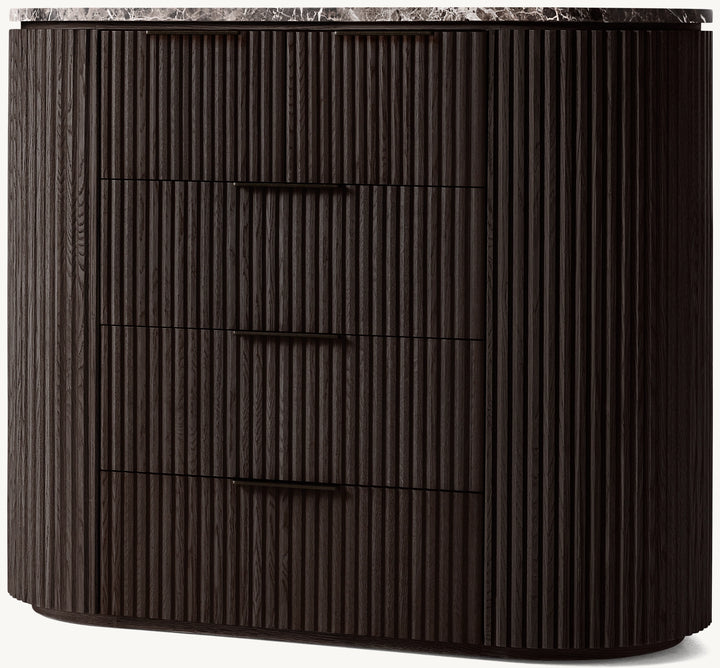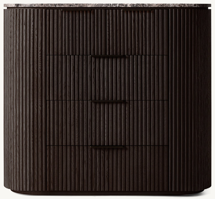 • Vertical oak reeding is finished in an intensive, multistep process that results in a smooth surface with visible grain