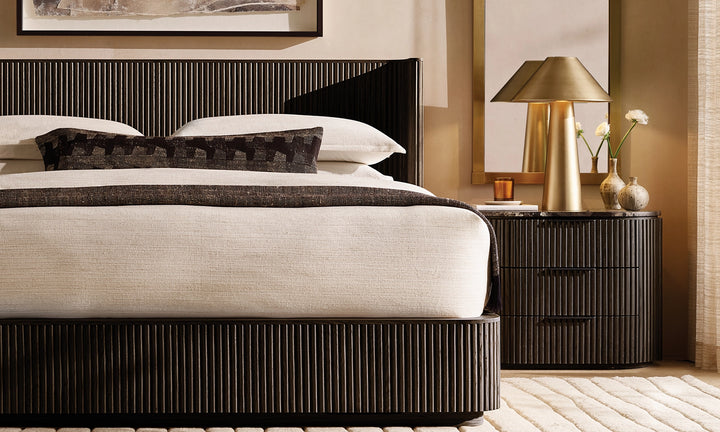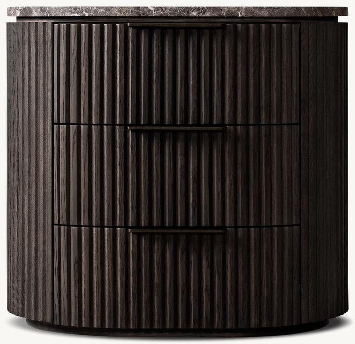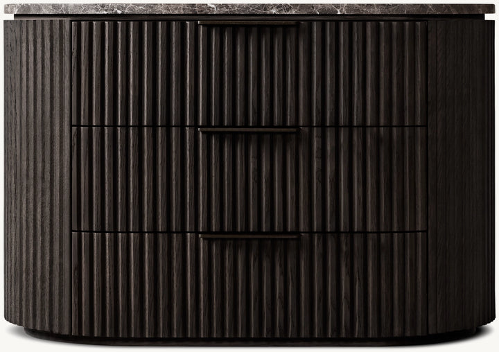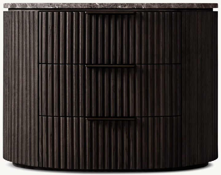 • Vertical oak reeding is finished in an intensive, multistep process that results in a smooth surface with visible grain