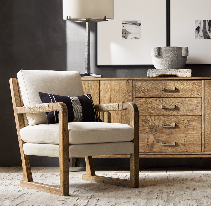 • Oak is wire brushed to highlight its rich grain; a sealed wax finish enhances its color