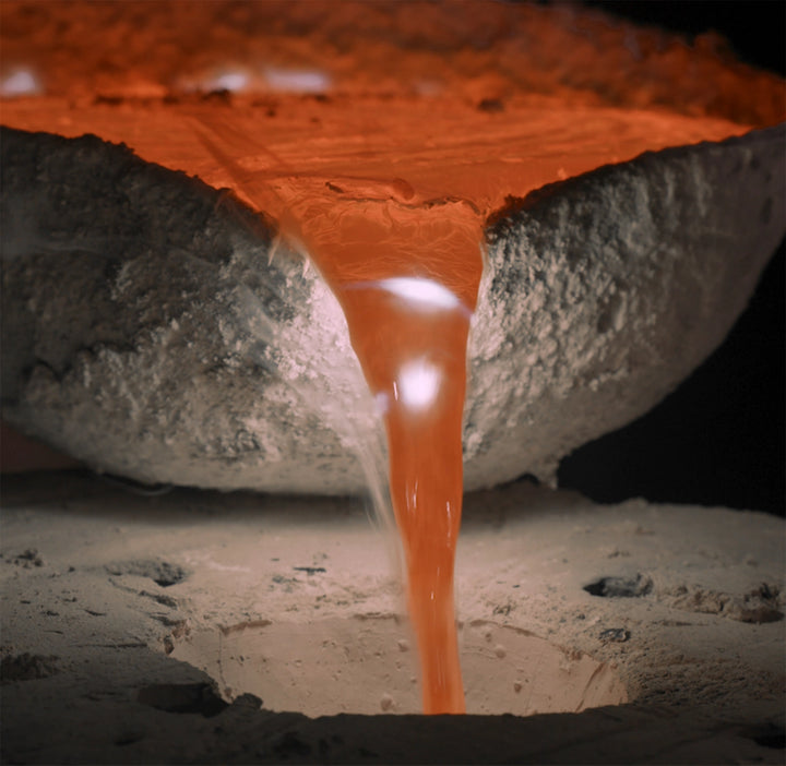 • Solid metal hardware is hand cast by skilled artisans employing an ancient foundry technique known in French ascire perdue(lost-wax). The hardware is individually sculpted by pouring molten metal into a custom wax mold. As the wax melts away, the finished piece emerges.
