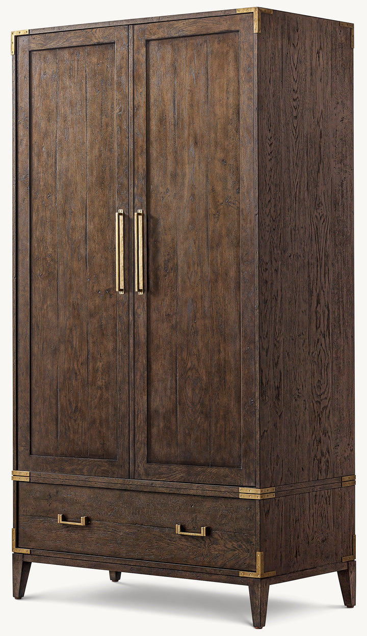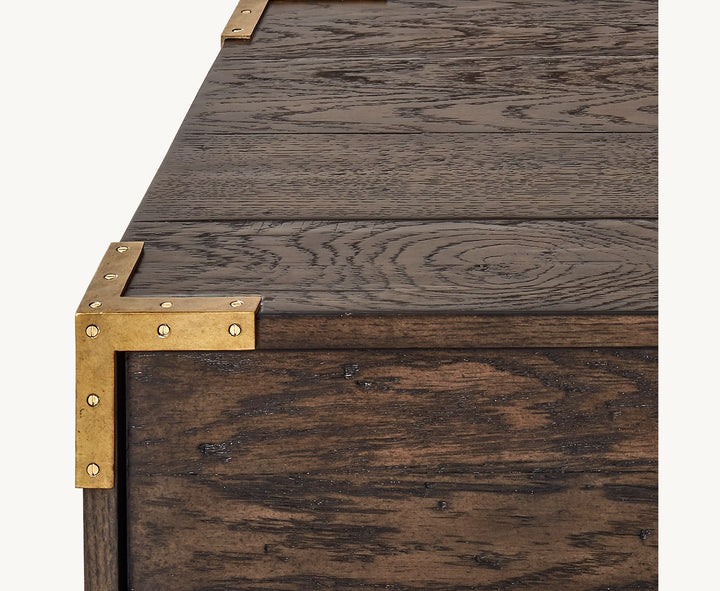 _ Oak is wire brushed to highlight its rich grain; a sealed wax finish enhances its color