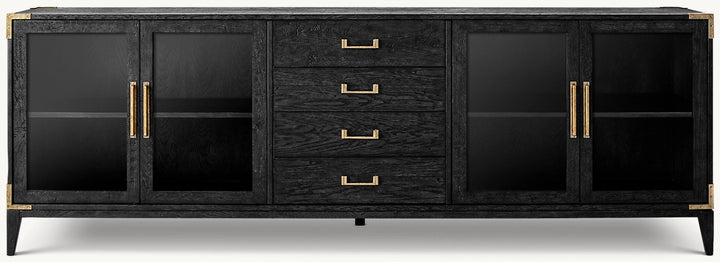 Cayden Campaign Glass 4-Door Sideboard With Drawers