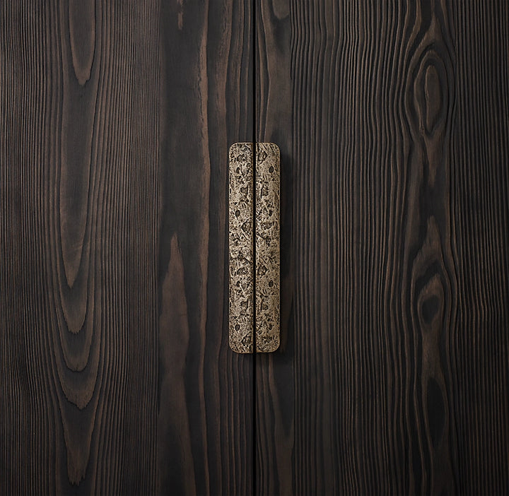 • Hardware crafted of hand-cast stainless steel with a textured finish. Greige European Fir features Champagne hardware; all other finishes feature Cast Aged Brass hardware.