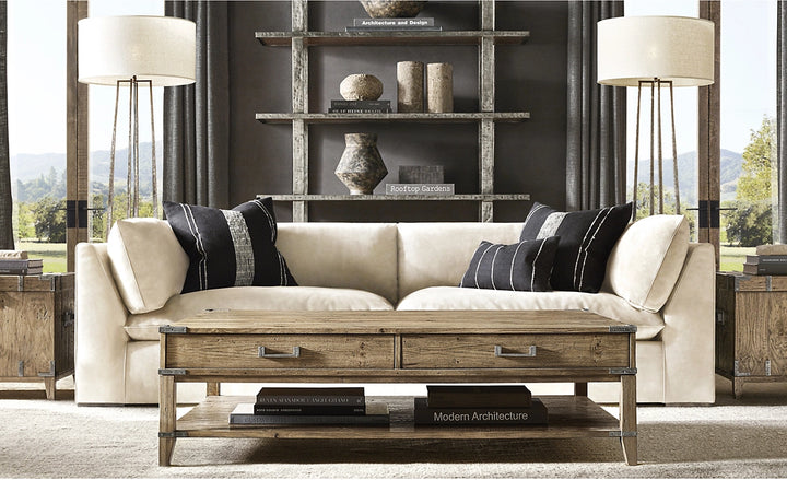 • Block feet crafted of beech wood with a Grey Drifted finish