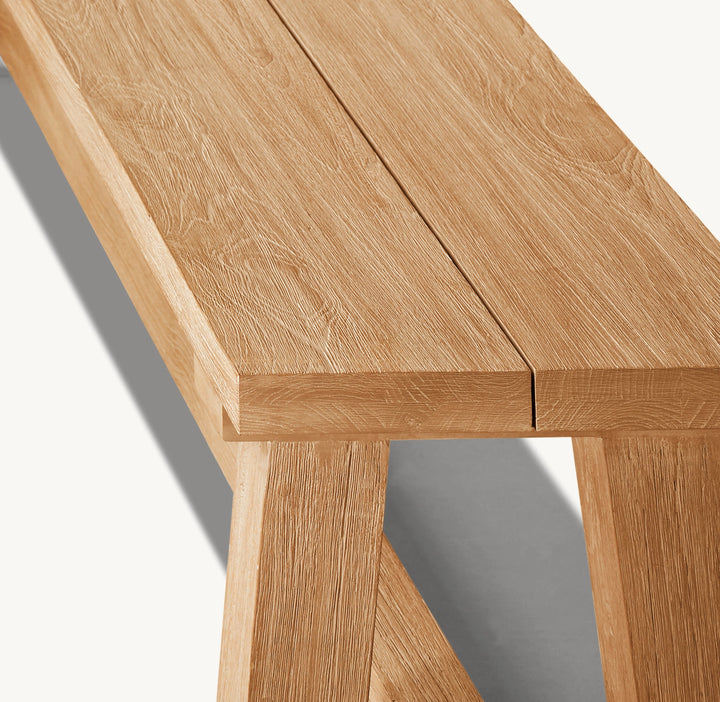 • Our teak hardwood is selected for its inherent beauty and durability and is exceptionally weather resistant due to natural oils that prevent drying and protect against moisture. Refer to ourTeak Care Guide.
