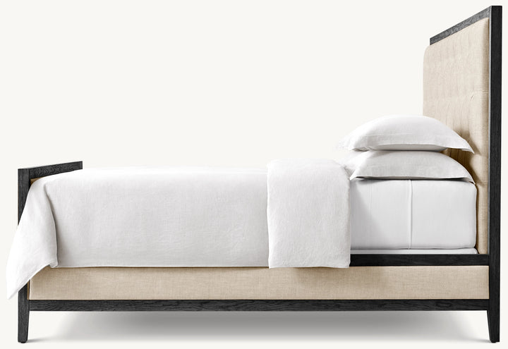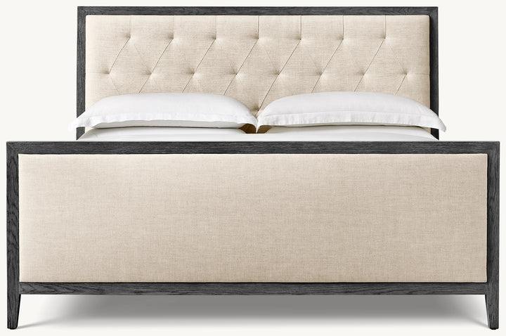 French Contemporary Fabric Diamond-Tufted Panel Bed With Footboard