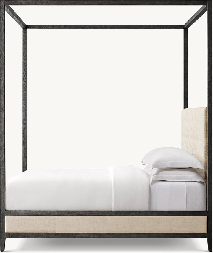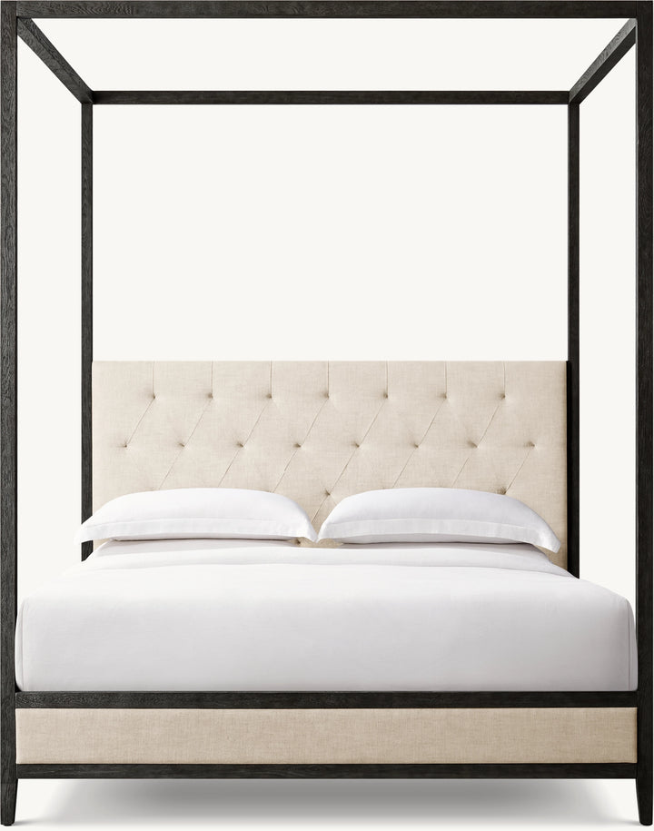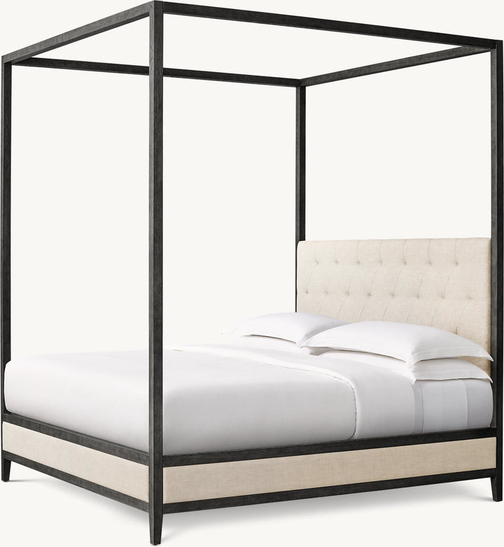 French Contemporary Fabric Diamond-Tufted Panel Canopy Bed
