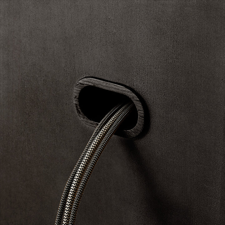 • Cord cutout in back panel for wire management; cord cutout has a wood grommet in a complementary finish
