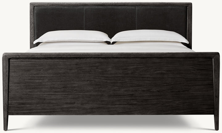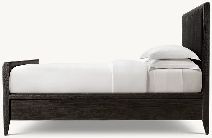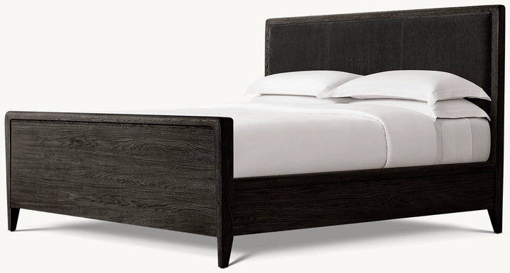 Gael Oak Leather Panel Bed with Footboard
