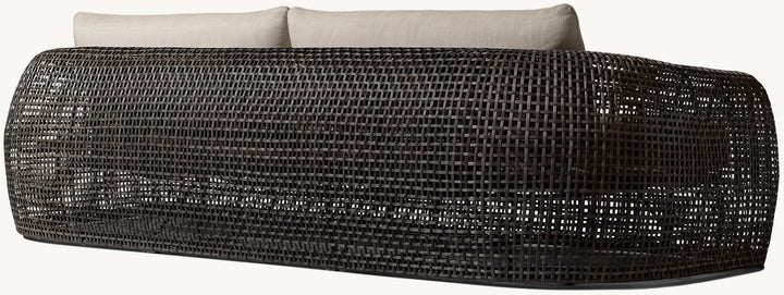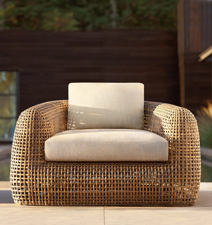 • Crafted by skilled artisans, the Gemini collection features a handwoven lattice of all-weather resin wicker wrapped around a powdercoated aluminum frame