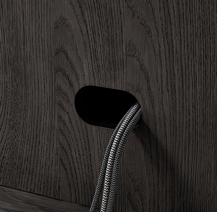 • 2 cord cutouts in back panel for wire management (1 per side); cord cutouts have wood grommets in a complementary finish