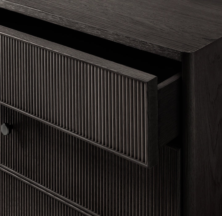 • Finish is achieved through an intensive, multistep process in which oak is wire brushed to highlight its rich grain