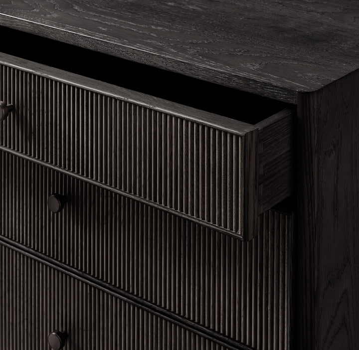 • English-dovetailed drawers feature soft-close glides; drawer interiors are fully finished