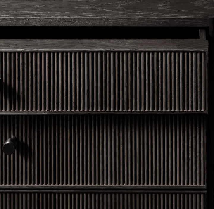 • Finish is achieved through an intensive, multistep process in which oak is wire brushed to highlight its rich grain