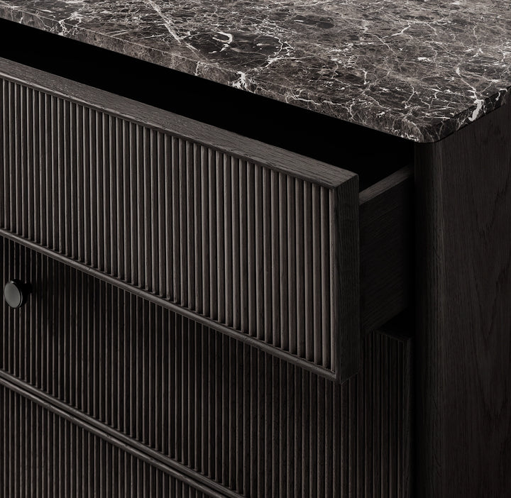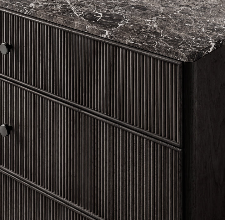 • Top crafted of ⅛"-thick Spanish or Turkish marble over an engineered wood core