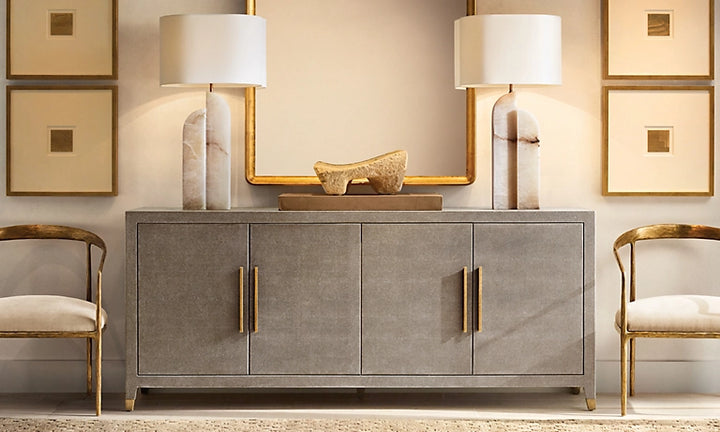 • Sideboard interiors are crafted of fine hardwood veneers with a painted finish to complement exterior color