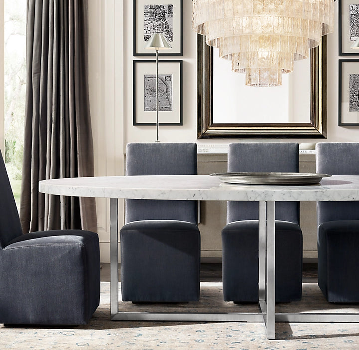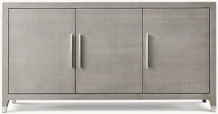 • Design details include solid metal capped feet and meticulously pieced leather panels that reflect the look of classic shagreen