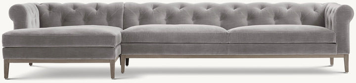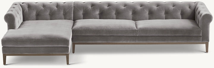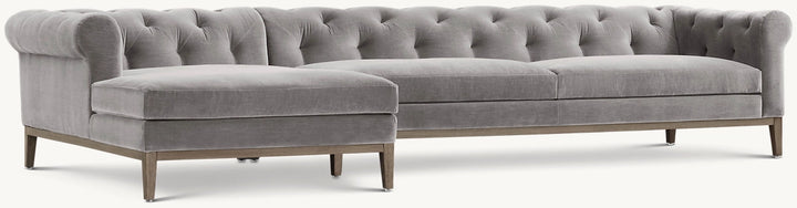 Italia Chesterfield Left-Arm Sofa-Chaise Sectional - Oak Base