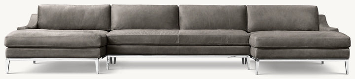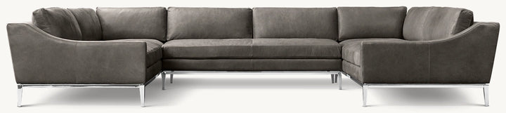 Italia Slope Arm Leather Customizable Sectional - Metal Base