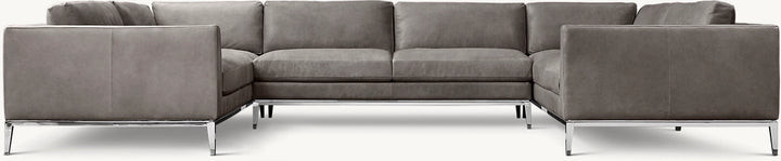 Italia Taper Arm Leather Customizable Sectional - Metal Base