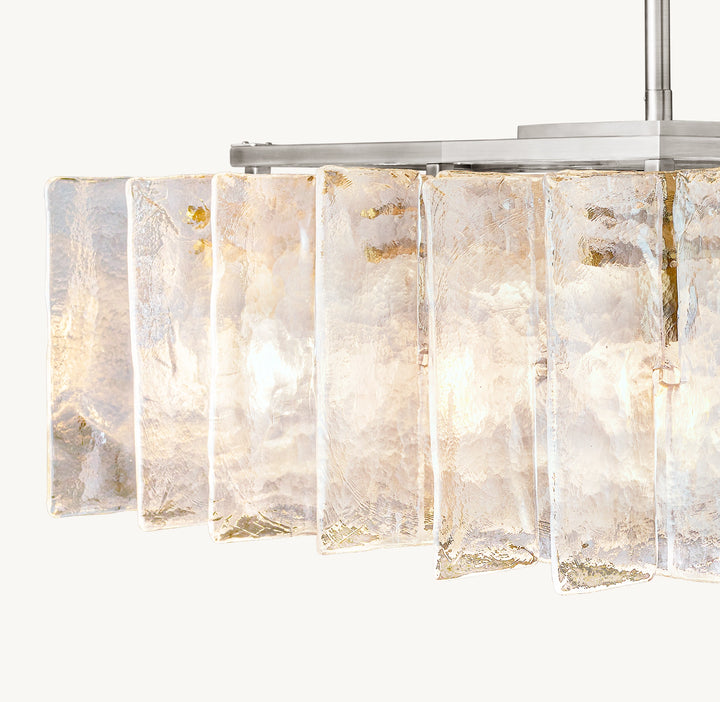 • Glass is cast in a custom mold to create its distinctive rippled texture