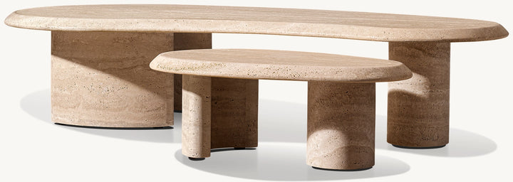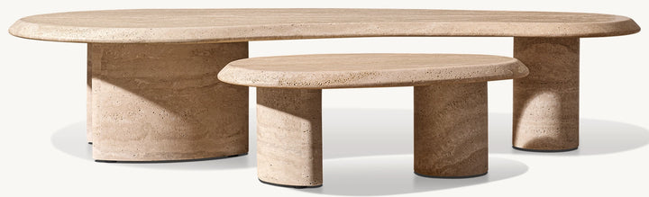 • Travertine has natural pitting of varied location that adds to the stone's character. Larger pits are filled; smaller holes are left unfilled. Pits on tabletop will be smaller than on base.