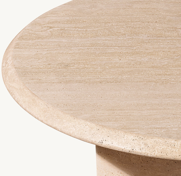 • Travertine has natural pitting of varied location that adds to the stone's character. Larger pits are filled; smaller holes are left unfilled. Pits on tabletop will be smaller than on base.