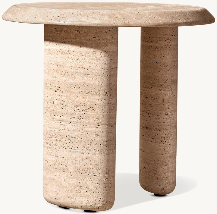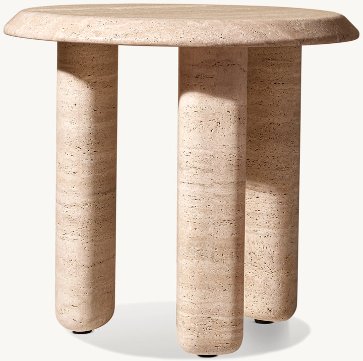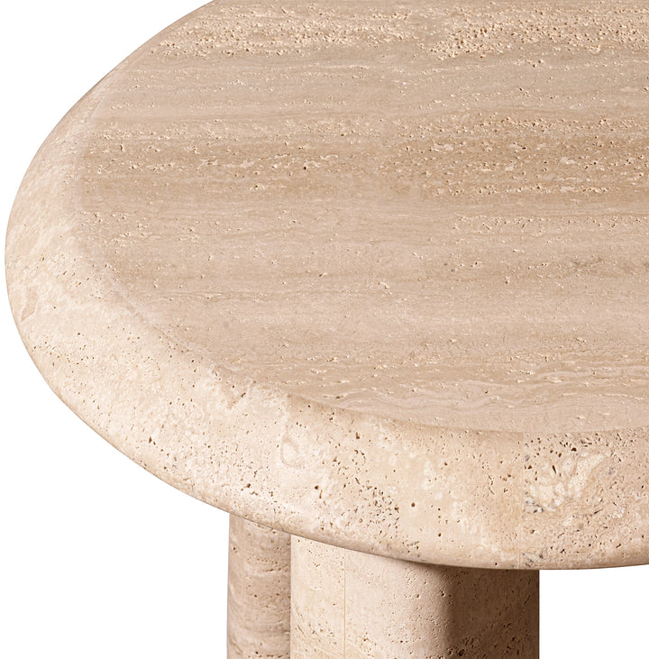 • Travertine has natural pitting of varied location that adds to the stone's character. Larger pits are filled; smaller holes are left unfilled. Pits on tabletop will be smaller than on base.