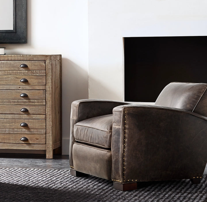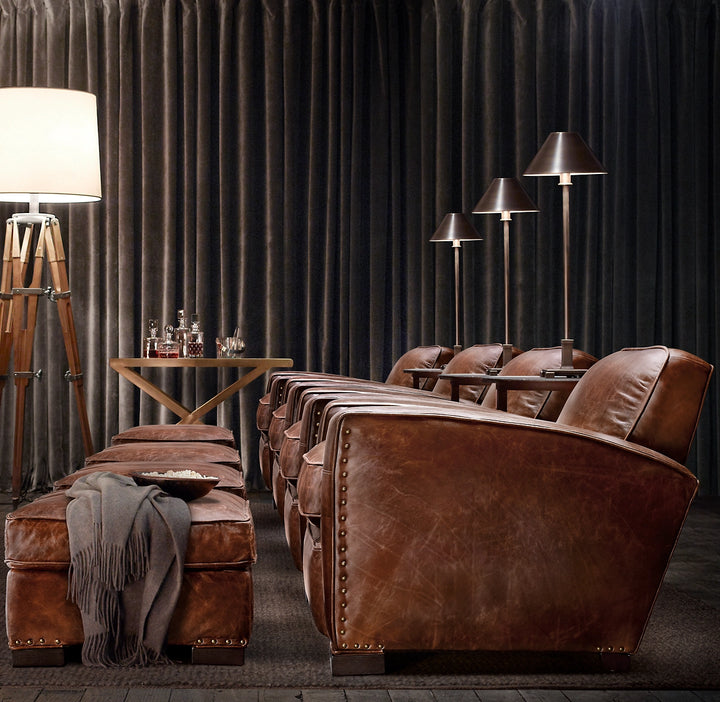 • Accented with hand-hammered nailheads with an antiqued brass finish