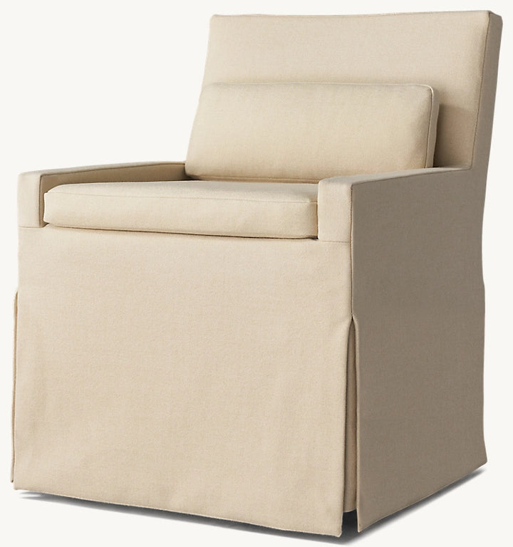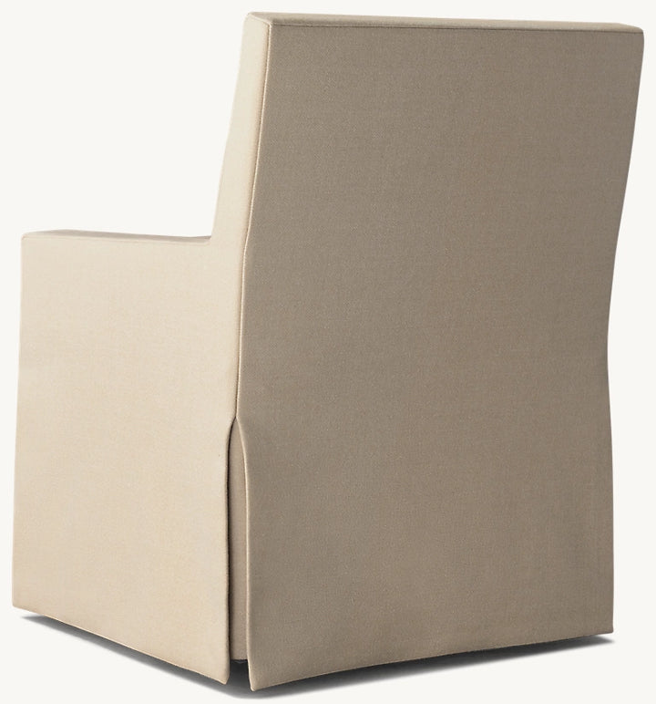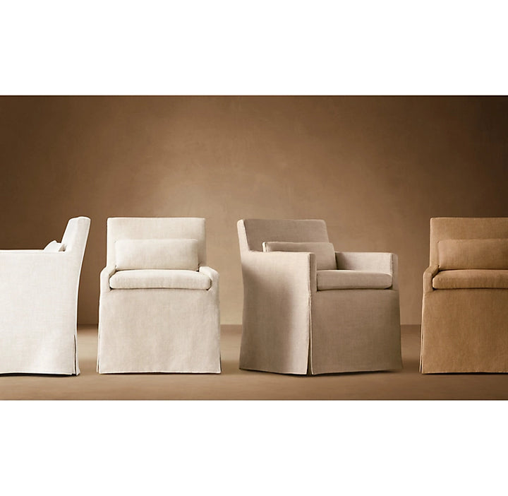 Low Belgian Track Arm Slipcovered Dining Side Chair