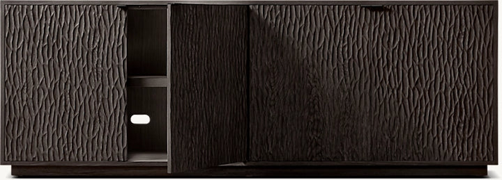 • Oak door fronts feature a deeply textured, chiseled surface in a meticulously crafted pattern