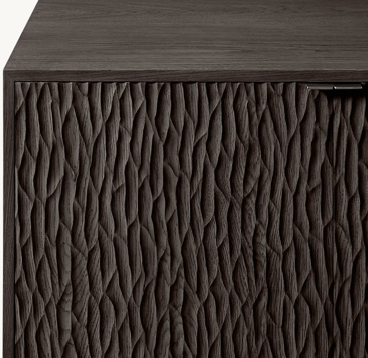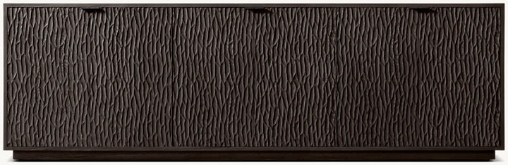 • Oak door fronts feature a deeply textured, chiseled surface in a meticulously crafted pattern