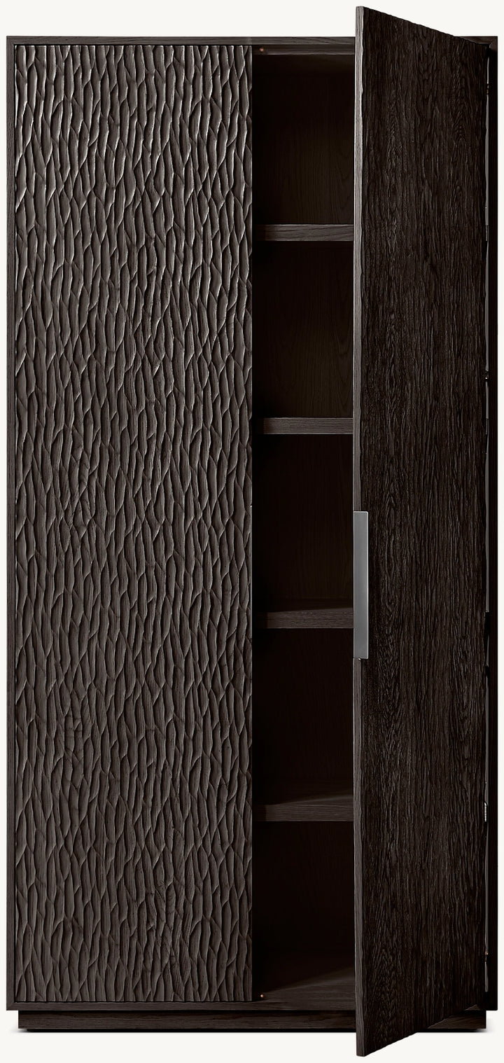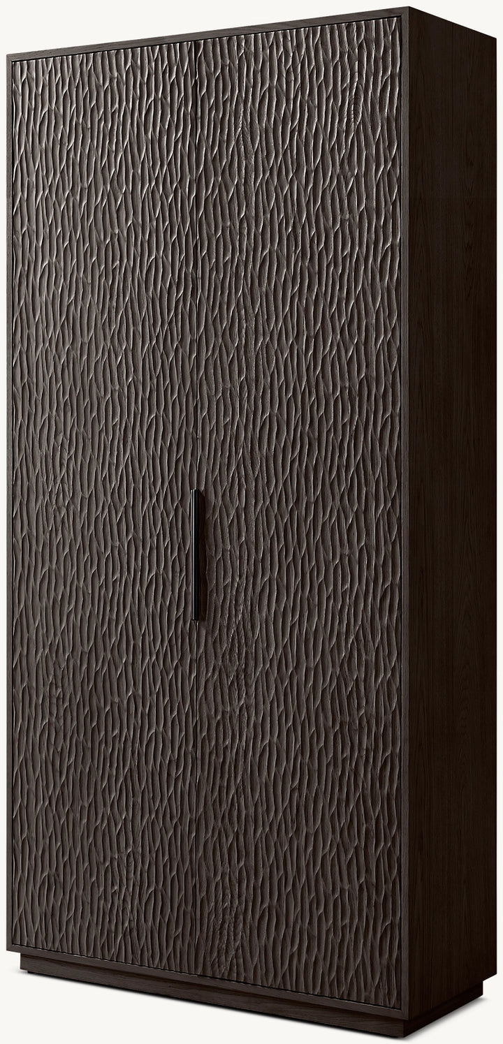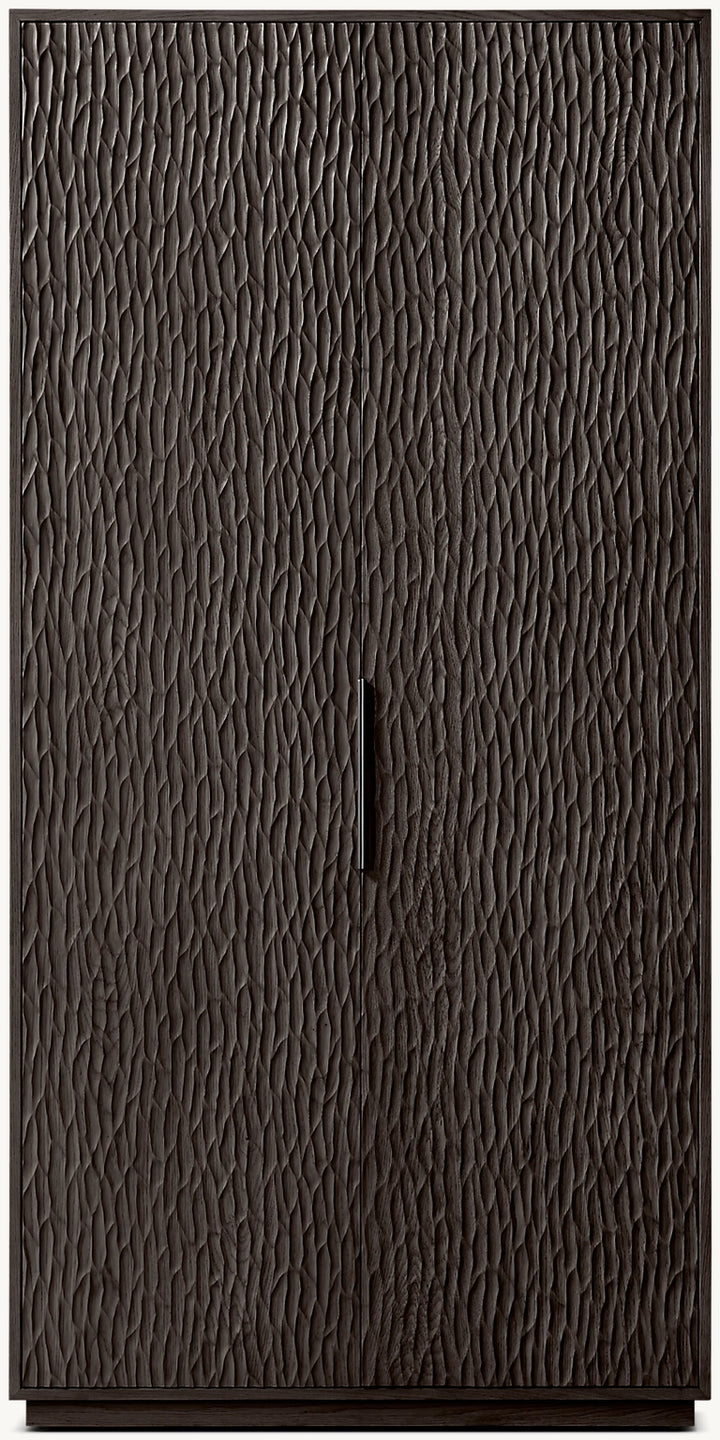 • Oak door fronts feature a deeply textured, chiseled surface in a meticulously crafted pattern