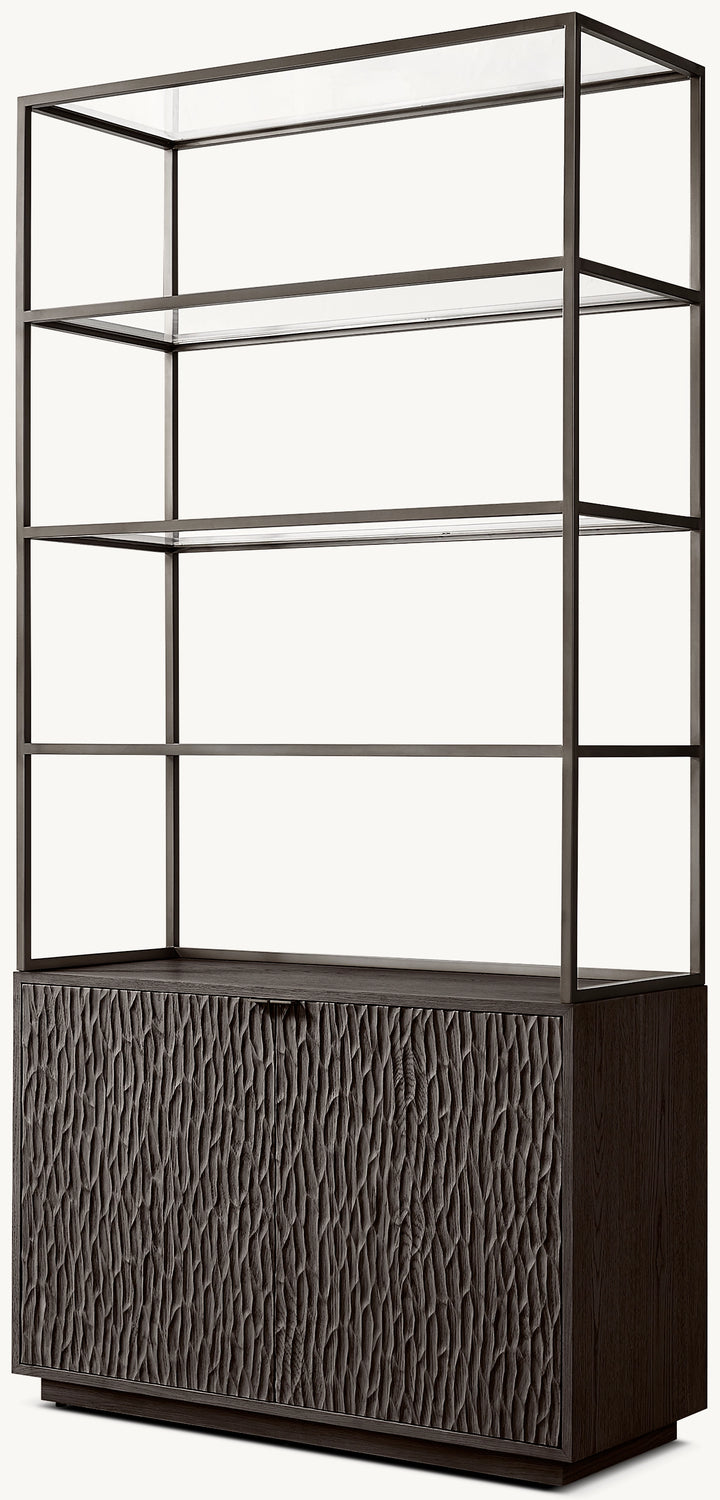 • Oak door fronts feature a deeply textured, chiseled surface in a meticulously crafted pattern
