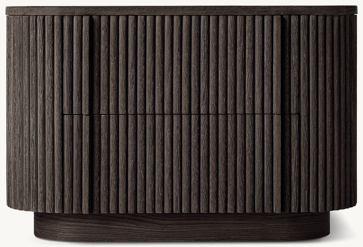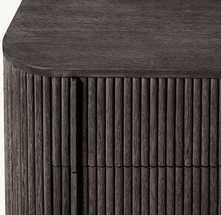 • Features solid oak reeding on all vertical surfaces, including the back, allowing versatility in room placement