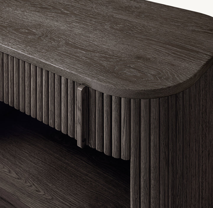 • Features solid oak reeding on all vertical surfaces, including the back, allowing versatility in room placement