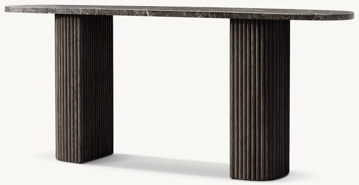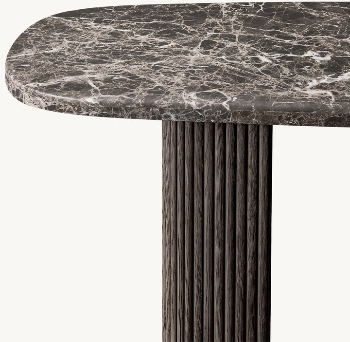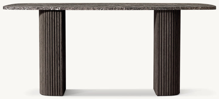 • Top crafted of 1¼"-thick Spanish or Turkish marble over an aluminum honeycomb core