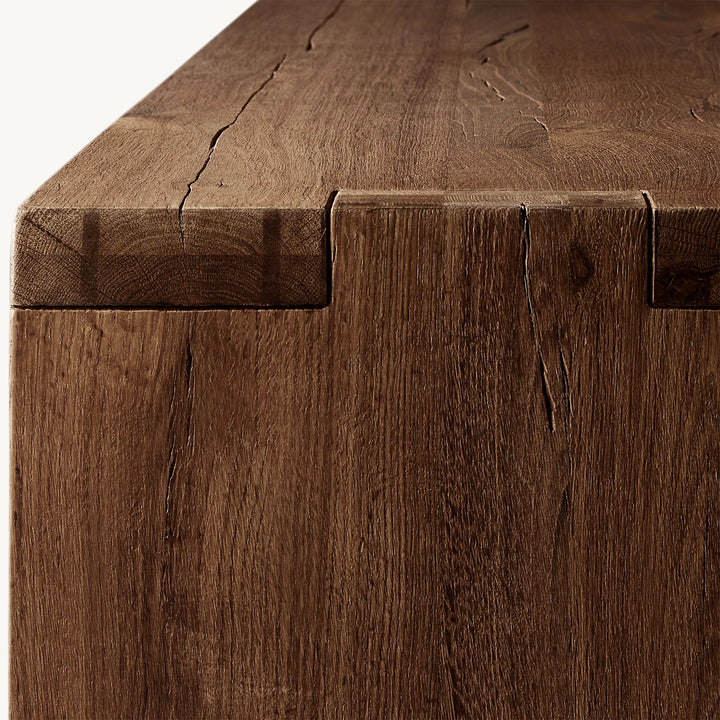 • Reclaimed Light Oak frame is crafted of solid reclaimed European oak beams that are carefully selected, planed and sanded by hand; back and sides are crafted of wood with reclaimed European oak veneers