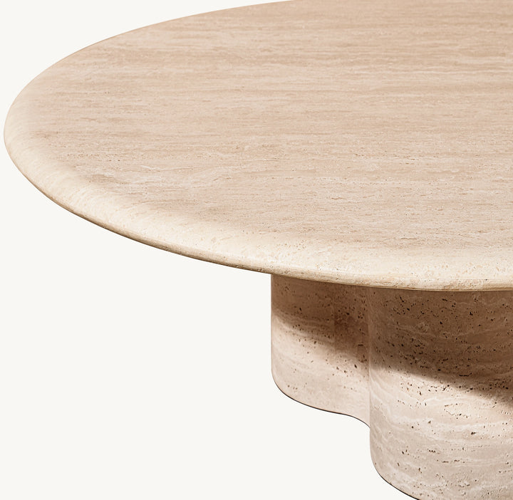 • Travertine has natural pitting of varied location that adds to the stone's character. Larger pits are filled; smaller holes are left unfilled. Pits on tabletop will be smaller than on base.