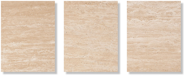 • Inherent variations in natural travertine color, texture and veining, as well as variance resulting from the hand finishing process, are to be expected and celebrated