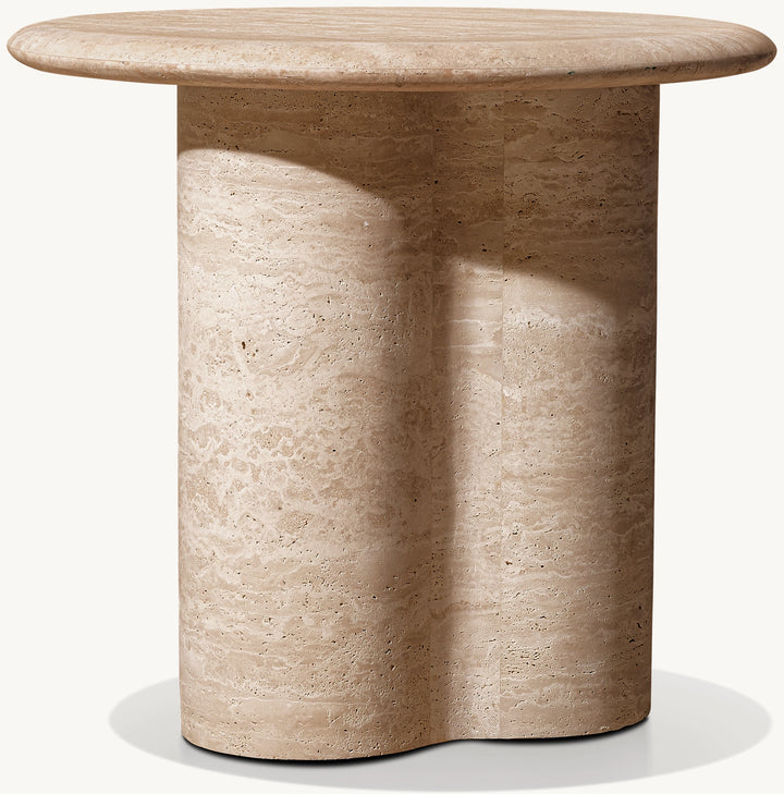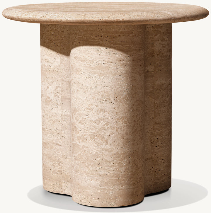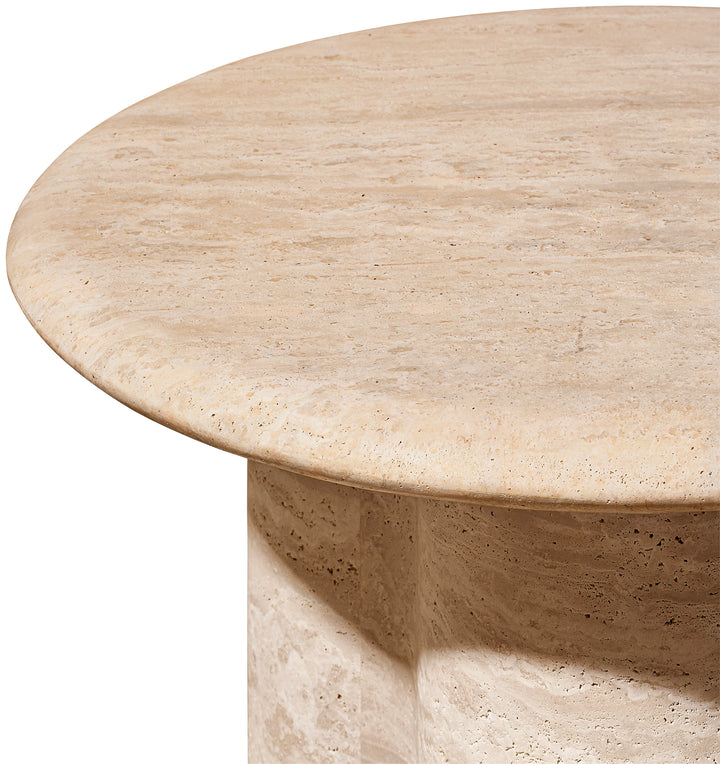 • Travertine has natural pitting of varied location that adds to the stone's character. Larger pits are filled; smaller holes are left unfilled. Pits on tabletop will be smaller than on base.